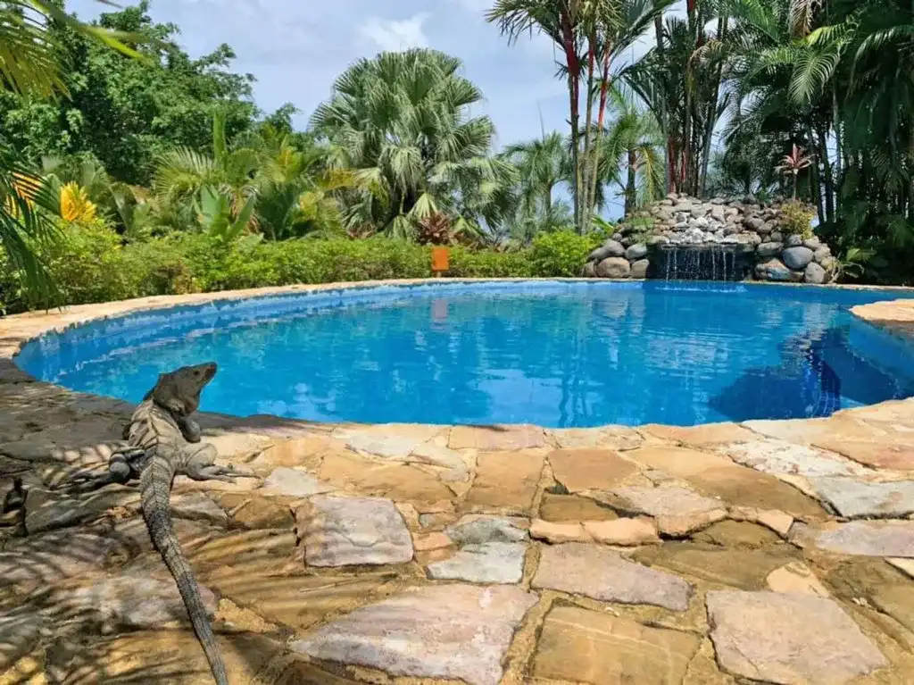 Casa Chameleon at Mal Pais offers unparalleled seclusion with ten individually designed villas, each completely unique in character and featuring private plunge pools overlooking the Pacific Ocean. Each villa showcases handcrafted details, large glass doors that seamlessly connect indoor and outdoor spaces, and panoramic ocean views from jungle-top positioning. The property's remote location, accessible only by 4x4 road, ensures complete privacy and tranquility, while lush rainforest surroundings provide encounters with howler monkeys, white-faced monkeys, iguanas, and exotic birds in their natural habitat, creating an authentic Costa Rican wilderness experience.