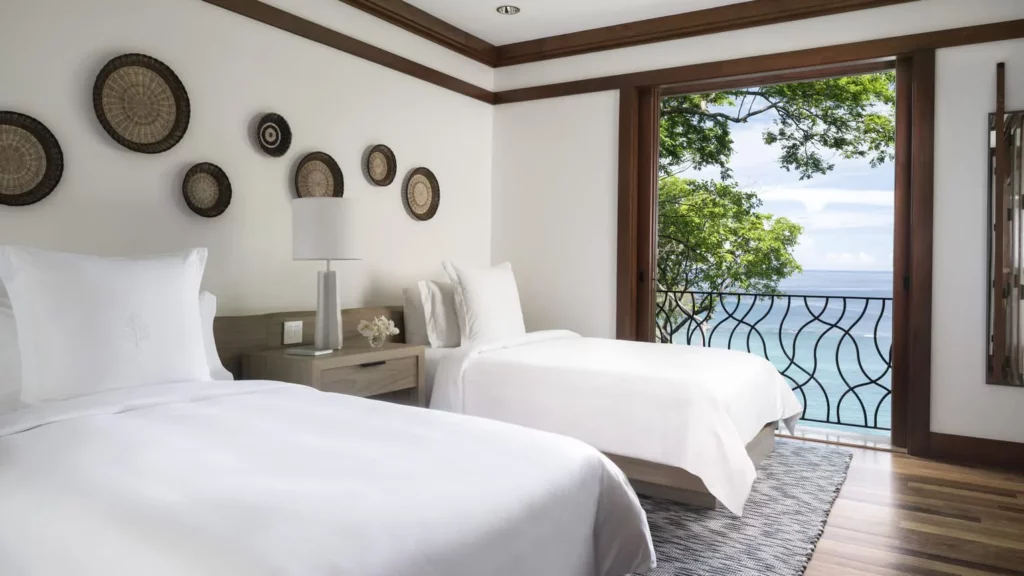 Positioned at the peninsula's narrowest point, Four Seasons offers the rare luxury of choosing your beach based on mood—calm Culebra Bay for paddleboarding and snorkeling, or the Pacific side for world-class surf breaks. The resort's elevated perch means every accommodation enjoys ocean views, while the new Virador Beach Club creates an adults-only sanctuary where infinity pools blend seamlessly with the horizon.