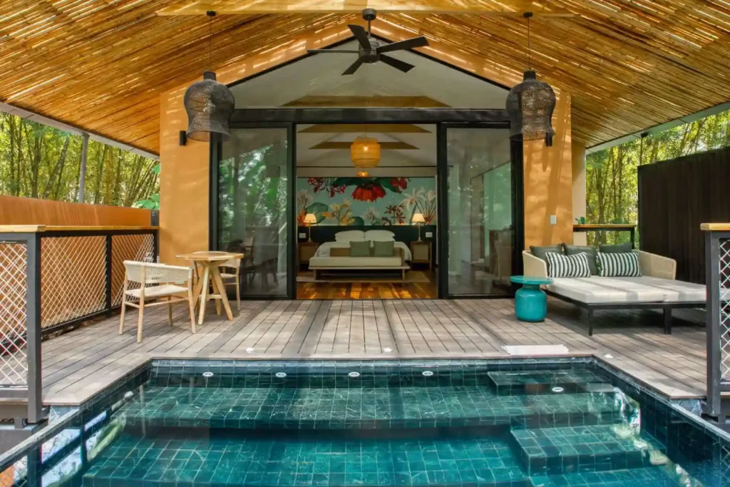 Every villa at Nayara Springs features an oversized private plunge pool filled with mineral-rich thermal waters flowing directly from Arenal Volcano. Imagine soaking in your personal hot spring at midnight while howler monkeys serenade from the canopy and the volcano glows against the stars—this is luxury that no spa can replicate.